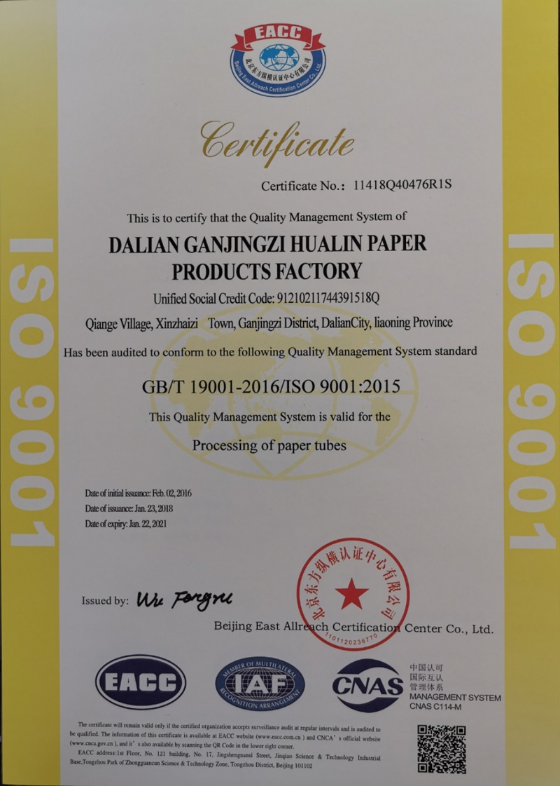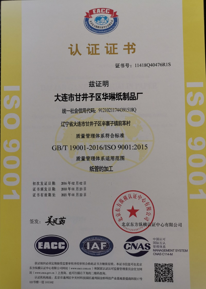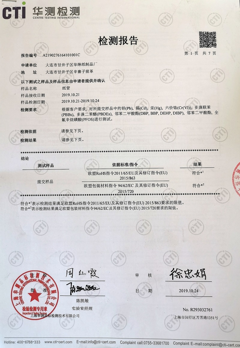 Menu我廠先后通過ISO9001質(zhì)量管理體系認(rèn)證和ISO14001環(huán)境管理體系認(rèn)證,各項(xiàng)管理系統(tǒng)完善,符合環(huán)保生產(chǎn)要求,達(dá)到國(guó)際標(biāo)準(zhǔn)。我廠生產(chǎn)的紙管、紙護(hù)角通過RoHS和PFOS認(rèn)證,符合歐盟標(biāo)準(zhǔn),是可替代木材新型環(huán)保包裝制品。